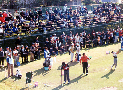 雨でもないのに、試合前パター以外の練習をしない選手もいます。 選手にとってスタート前の練習は、いいプレーをするため、最高のプレーを見てもらうため、そして集中力を高めていくためのものです。 朝クラブハウスを出たときからその日一日の戦いは始まるのです。