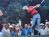 日本アマチュア選手権や日本オープンに出場するトップアマチュアは、強い人ほど紺や黒のズボンに白いシャツが多かった時代である。それはともかくとして私の印象ではストライプや柄物が当時の流行だったと記憶している。自由な気質の米国ツアーのファッションの流れである。