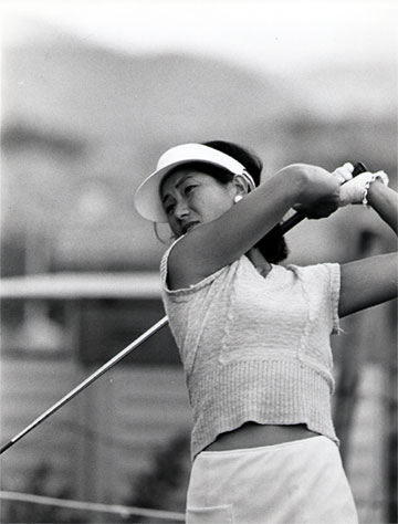 などなど思いしや「人のことを言う前に」と言う写真を見つけてびっくり。 おへそこそ見えないが、私もお腹を出してプレーしていたことがあったのだ。 写真の裏には「51,9,12ときわ台女子プロ」と記してある。昭和51年(1976年)当時は、私もこんなスタイルでゴルフをしていたのか。おまけに襟もない。