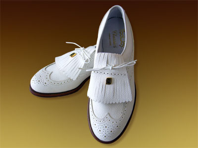 初めてその友人の履いているフットジョイを見た当時「何と素敵なゴルフシューズなのだろう」と思った。押し皮がかもしだす表面の細かな凹凸と純白が格調高い品を感じさせた。