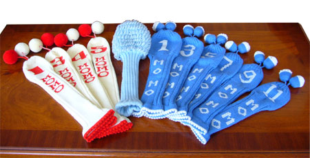 昔はバッグ置き場のクラブには色とりどりの手編みのヘッドカバーがついていた。