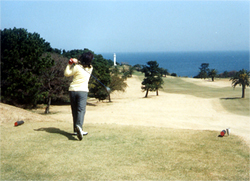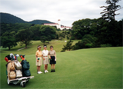 富士コース11番ティーショット 大島コースにて(筆者中央)