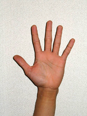 4. 母指(親指)を開いたり(伸展)、手のひらに触れたり(屈曲)することができますか?
